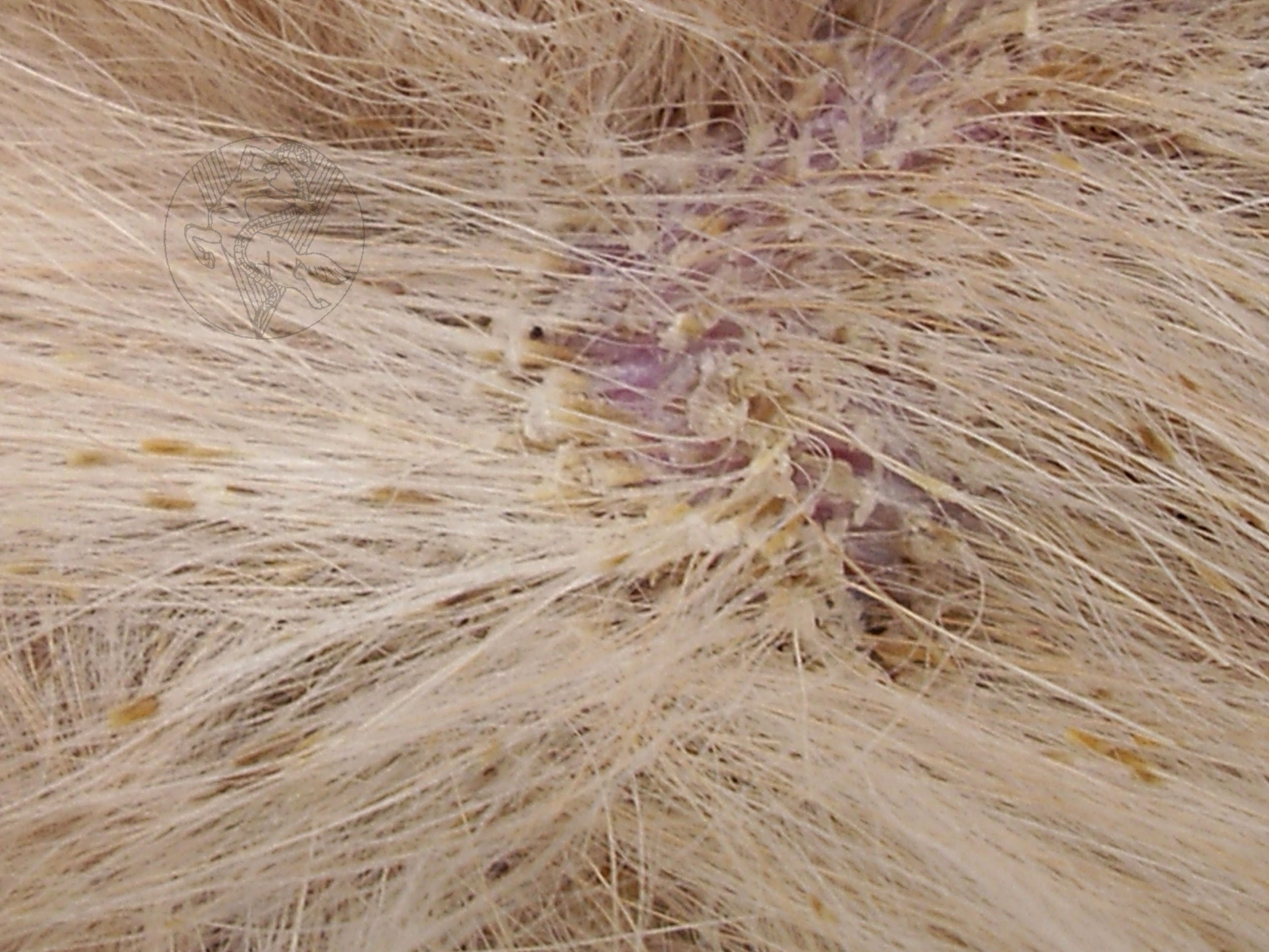 The image on the right shows scales of secondary seborrhoea oleosa.